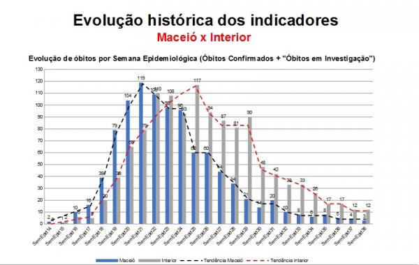 Após 6 meses de pandemia, Alagoas se tornou referência nacional pela evolução histórica positiva dos números no enfrentamento à Covid-19. Na última semana, o estado se destacou por registrar o maior período de quedas na média móvel de mortes em todo o Brasil, com quase 50 dias seguidos de diminuição na taxa.