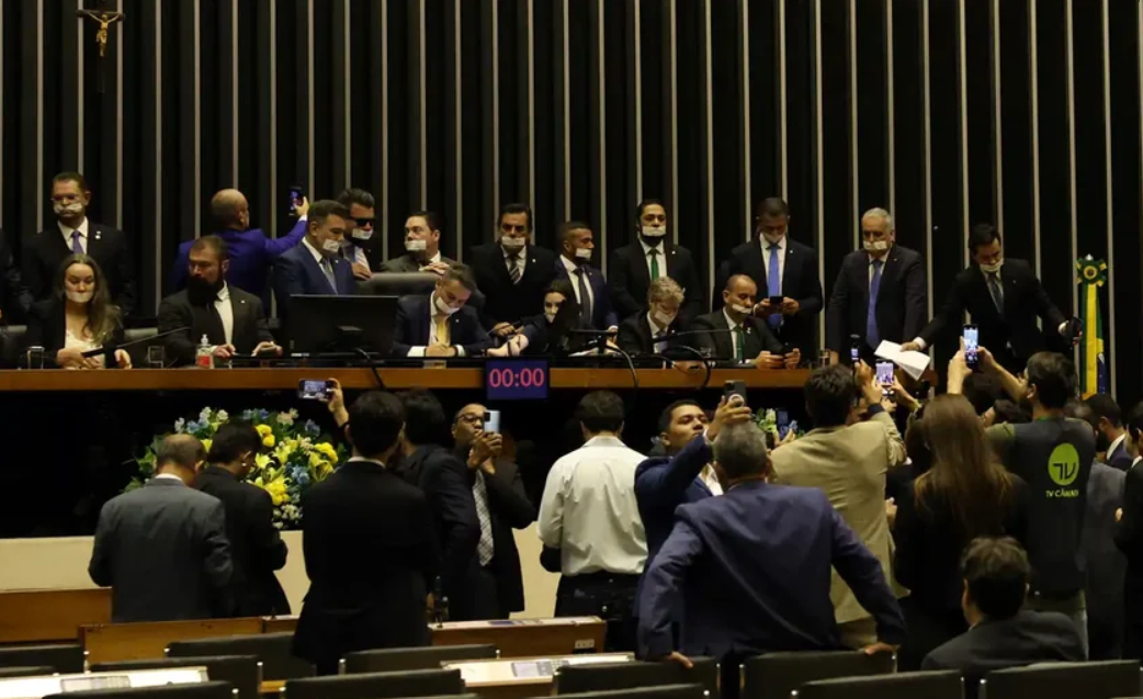 Deputados da base do governo repudiaram a ação da oposição e cobraram que a presidência da Câmara restabeleça a ordem no plenário.