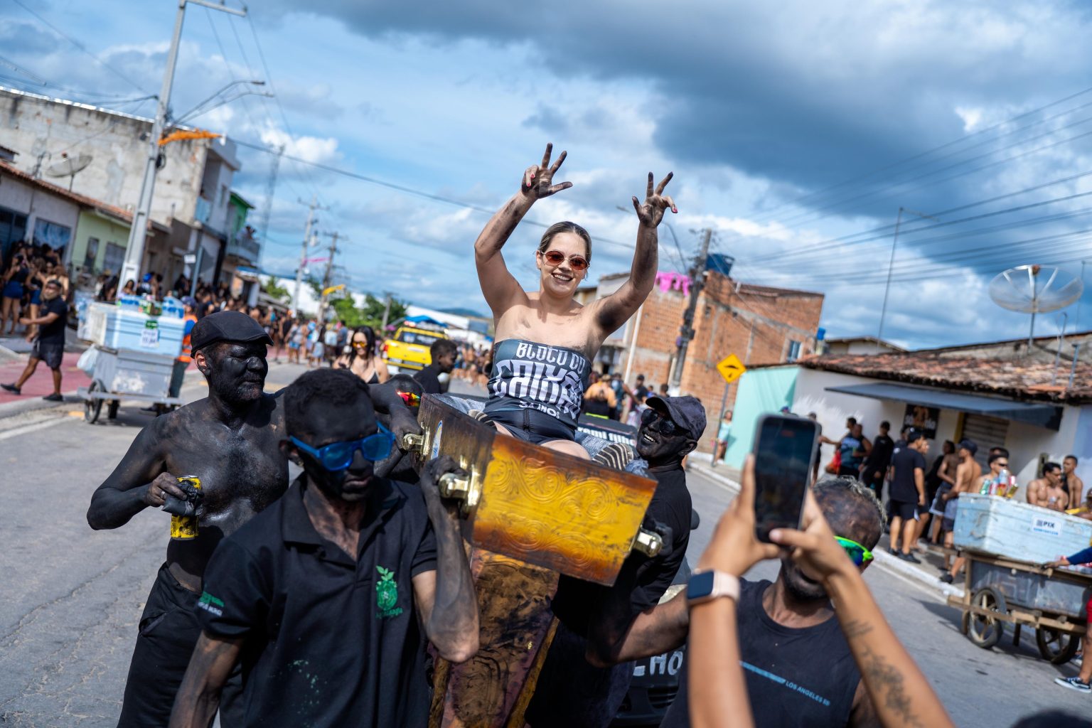 Mais do que a cor que marca os participantes, o destaque vai para o próprio caixão que vai à frente da folia. É nele que os mais ousados se aventuram, aceitando ser carregados dentro da caixa nada simpática, mas que virou tradição e símbolo da irreverência do bloco.