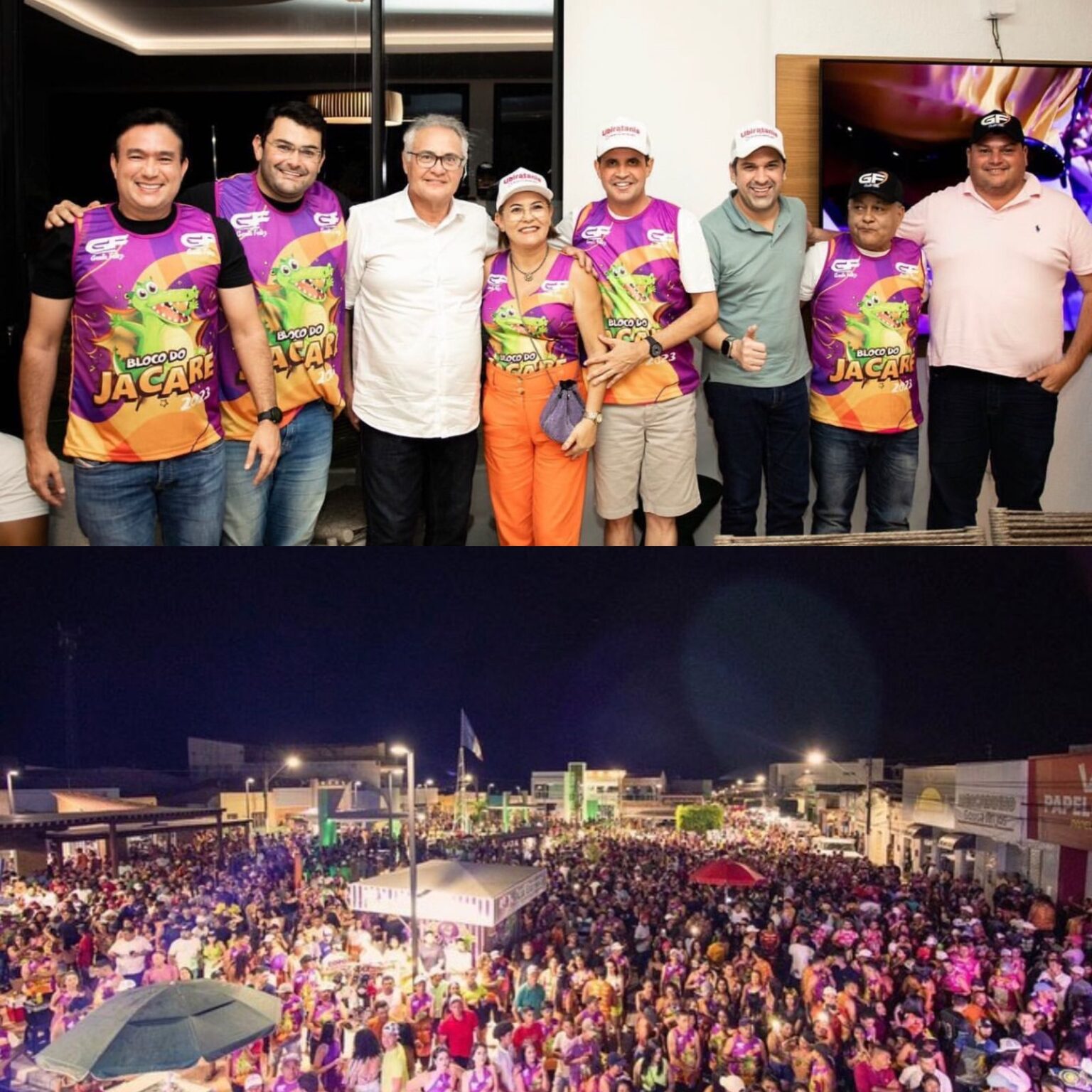 “Recepcionando amigos queridos e lideranças do nosso estado e região. Quero agradecer muito a presença de cada um de vocês, sejam sempre muito bem-vindos a nossa querida Carneiros”, disse Geraldo Filho. “O Bloco do Jacaré é uma confraternização de amigos”, lembrou.