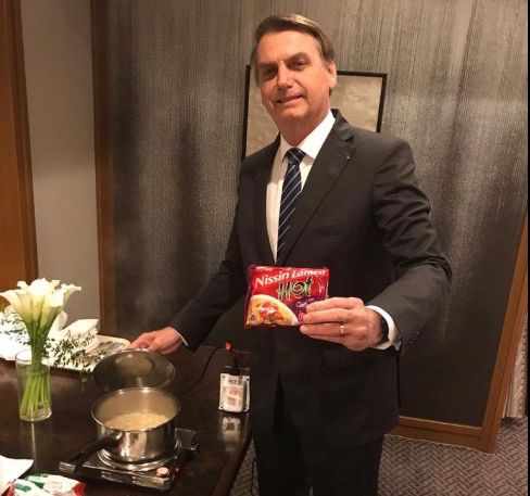 Mantendo o costume de propagandear hábitos nutritivos que não passariam pelo aval de um médico, como engolir camarão sem mastigar, o Jair Bolsonaro agora decidiu se alimentar de miojo de forma irrestrita.