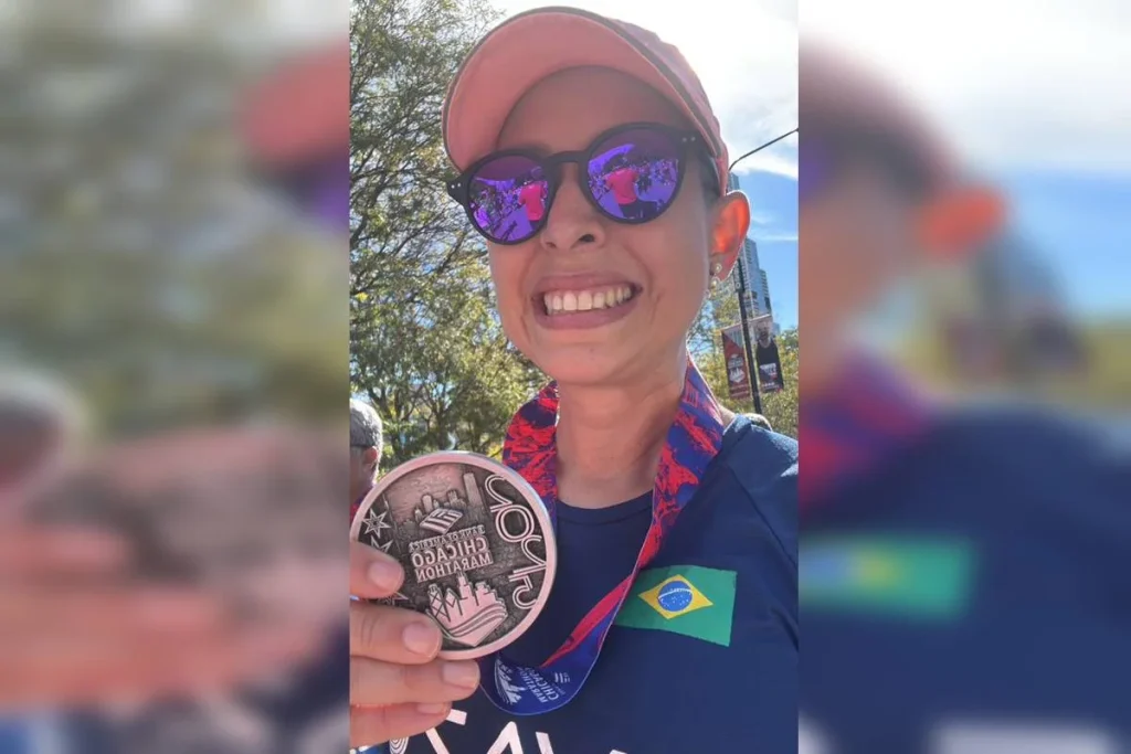A bancária encarou um novo tratamento. No final de 2024, após concluir o protocolo da quimioterapia, resolveu se inscrever na maratona e iniciar os treinos. No meio do planejamento para a prova, em março de 2025, descobriu nódulos no cérebro que apontavam para a metástase no sistema nervoso central. Ela fez a radiocirurgia e quimio.