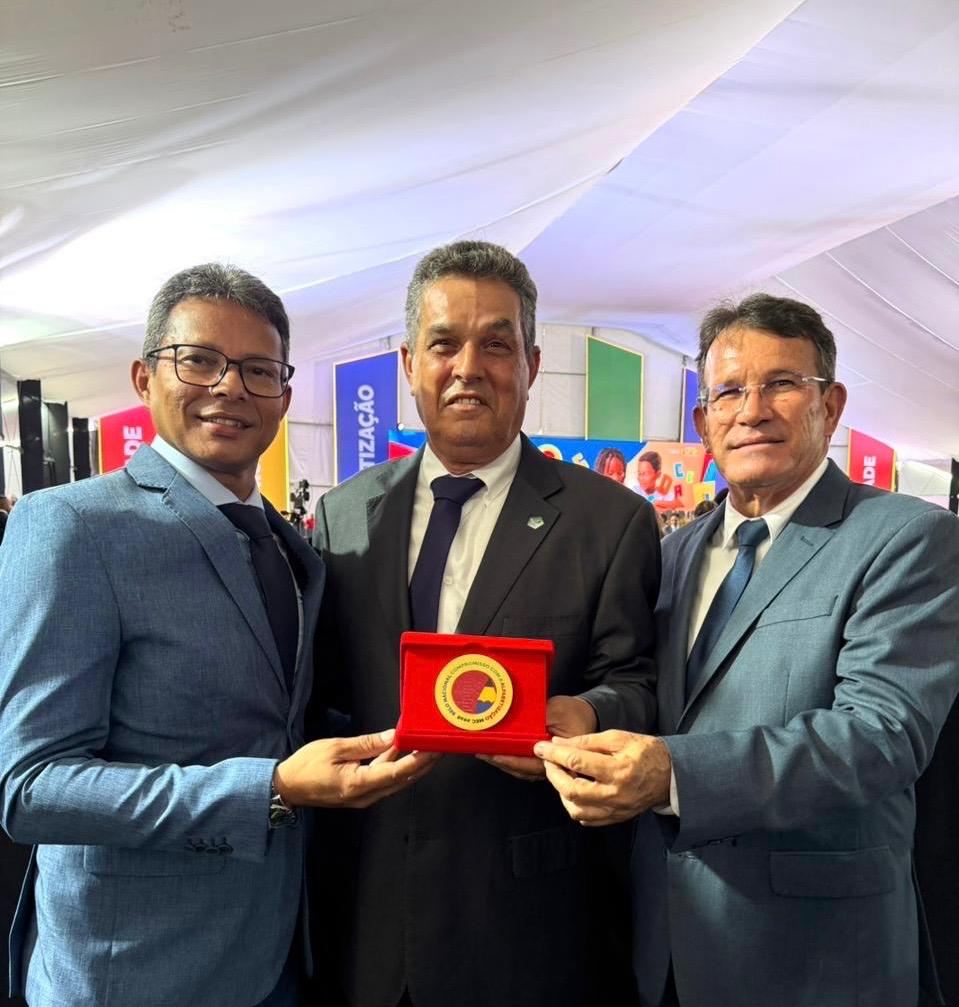 Nesta segunda-feira (23), o prefeito Neno Freitas, o vice-prefeito, Renato Purificação e o secretário Ednaldo Firmino, participaram em Brasília, da Cerimônia de Condecoração da 2ª edição do Selo Nacional Compromisso com a Alfabetização, conduzida pelo presidente Lula e pelo Ministro da Educação, Camilo Santana. Pelo segundo ano consecutivo, o município foi agraciado com a categoria “Ouro”.