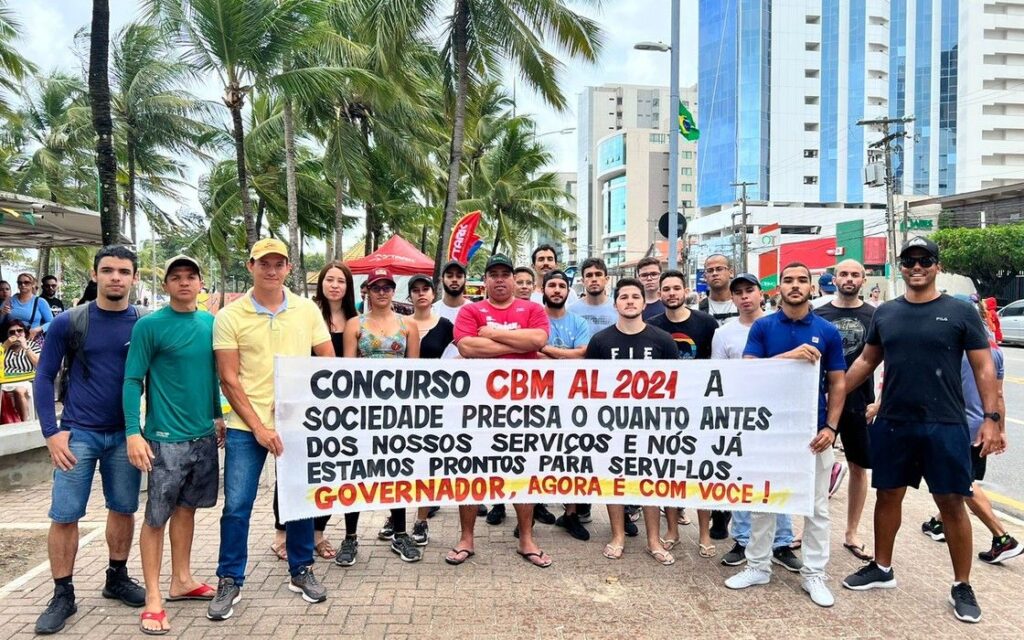Dezenas de concursados aprovados do Corpo de Bombeiros Militar de Alagoas (CBMAL) realizaram, nesse domingo (7), um novo protesto contra a demora do governo em realizar as nomeações e convocar o grupo para iniciar as aulas dos cursos de formação de praças e de oficiais.