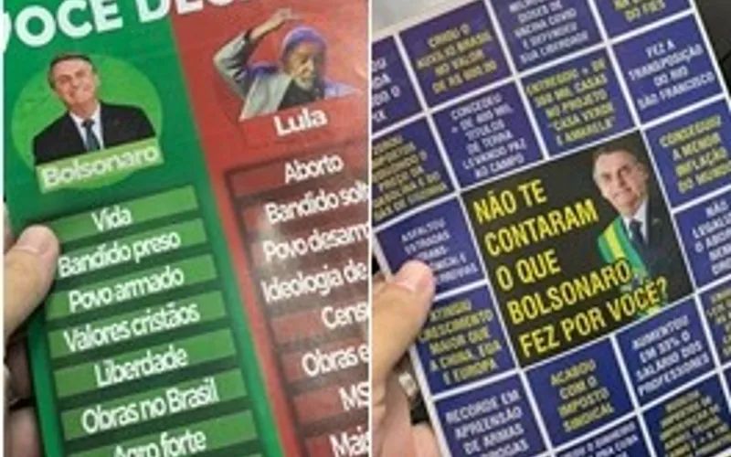 Outras imagens mostram panfletos pró-Bolsonaro e contra Lula, que, segundo o funcionário, foram distribuídos no local.