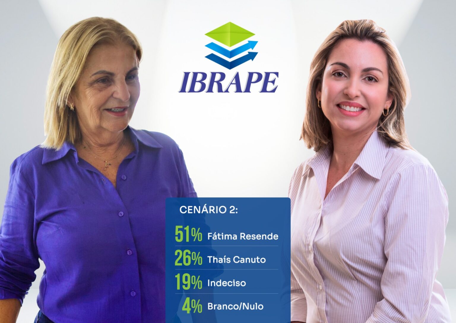No confronto direto estimulado e polarizado entre as duas possíveis candidatas, Fátima Resende aparece com 51% e Thais Canuto com 26%. Com a margem de erro de 3%, a diferença entre elas fica abaixo dos 20%. No caso de uma eleição polarizada estamos falando de 10%. Os indecisos neste cenário estão em 19%. Branco e nulo somam 4%.