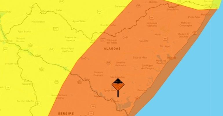 O alerta é direcionado aos municípios de Campestre, Jacuípe, Maragogi, Novo Lino, Porto Calvo.