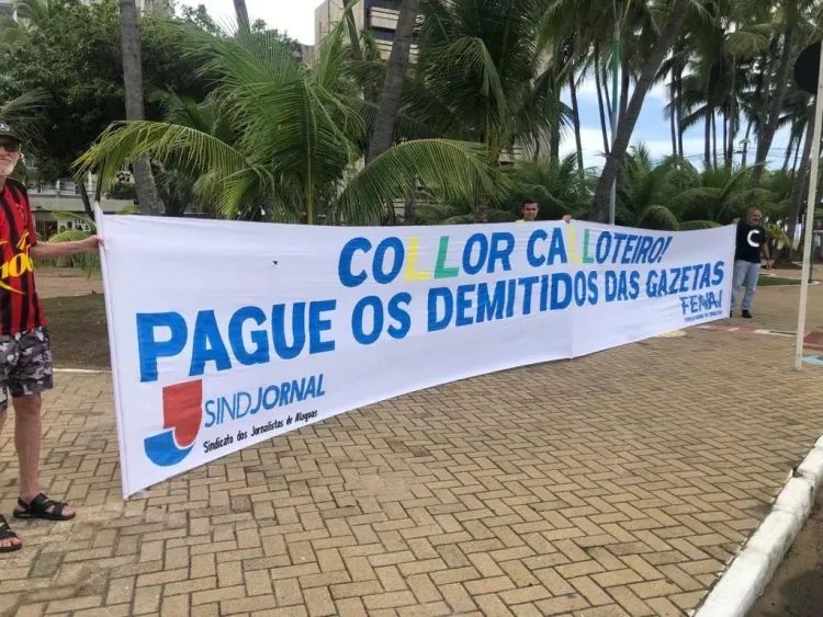 “A empresa de Collor foi uma das principais responsáveis pela maior greve já realizada no Brasil por jornalistas, quando, em 2019, ela propôs, juntamente a outras empresas de comunicação, a redução salarial de 40% do piso salarial dos jornalistas. Tentativa essa que só não foi posta em prática graças às manifestações corajosas dos jornalistas, liderados pelo Sindjornal, e à decisão da Justiça do Trabalho, em favor da categoria”, completa o texto.