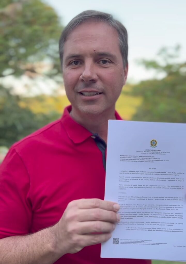 O prefeito também divulgou um documento, onde a ação liminar da Justiça autorizou a retirada do conteúdo sobre o candidato, sob pena de multa de R$ 200 por hora – caso o conteúdo continue a permanecer no Instagram – e R$ 5 mil para cada nova mensagem ou publicação de mesmo teor.