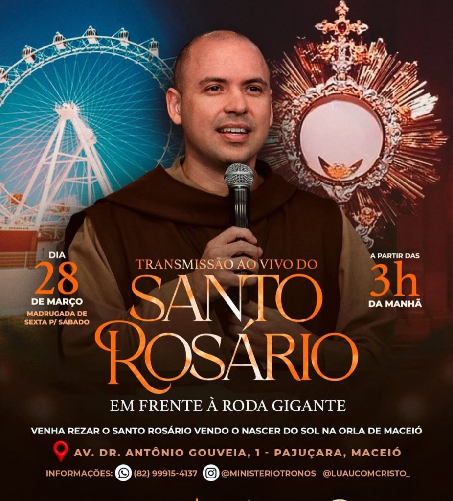 A cidade de Maceió será palco de um momento especial de fé no próximo dia 28 de março. Fiéis irão se reunir na orla de Pajuçara para acompanhar, ao vivo, a transmissão do Santo Rosário com Frei Gilson.