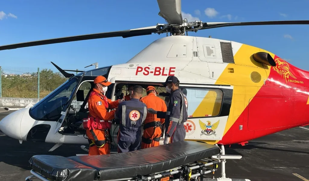 Com necessidade de atendimento especializado, a Central de Regulação das Urgências (CRU) acionou o Serviço Aeromédico do Samu. A equipe do helicóptero Falcão transportou o paciente do HRN ao Hospital Geral do Estado (HGE), em Maceió, garantindo suporte clínico contínuo durante todo o trajeto.