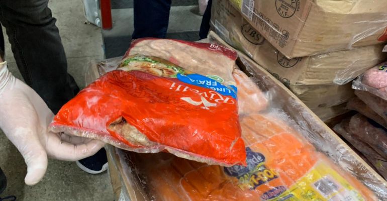Os produtos foram apreendidos no último sábado, 14, quando foram recolhidos 910kg de alimentos como presunto, calabresa, salsicha e linguiça, além de 450kg de queijos.