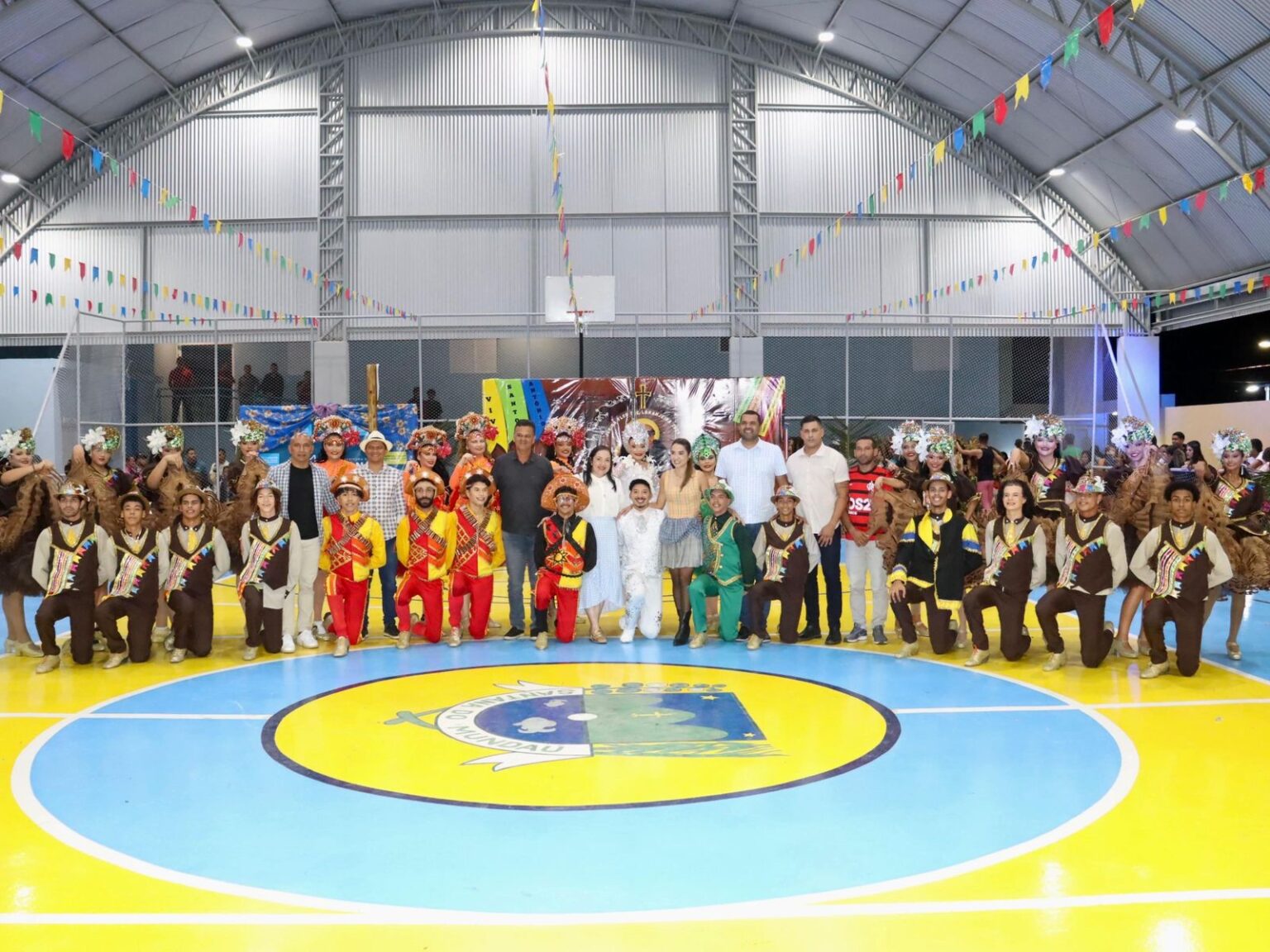 O recém inaugurado ginásio da Escola Monsenhor Clóvis Duarte foi palco do grande encontro de quadrilhas realizado nesta sexta-feira (20), em Santana do Mundaú. Realizado pela prefeitura, através da Secretaria de Assistência Social, além da grande anfitriã da noite, “Flor de Laranjeira”, grupos dos municípios de Branquinha e União dos Palmares abrilhantaram o evento com muita criatividade, cores e tradição.