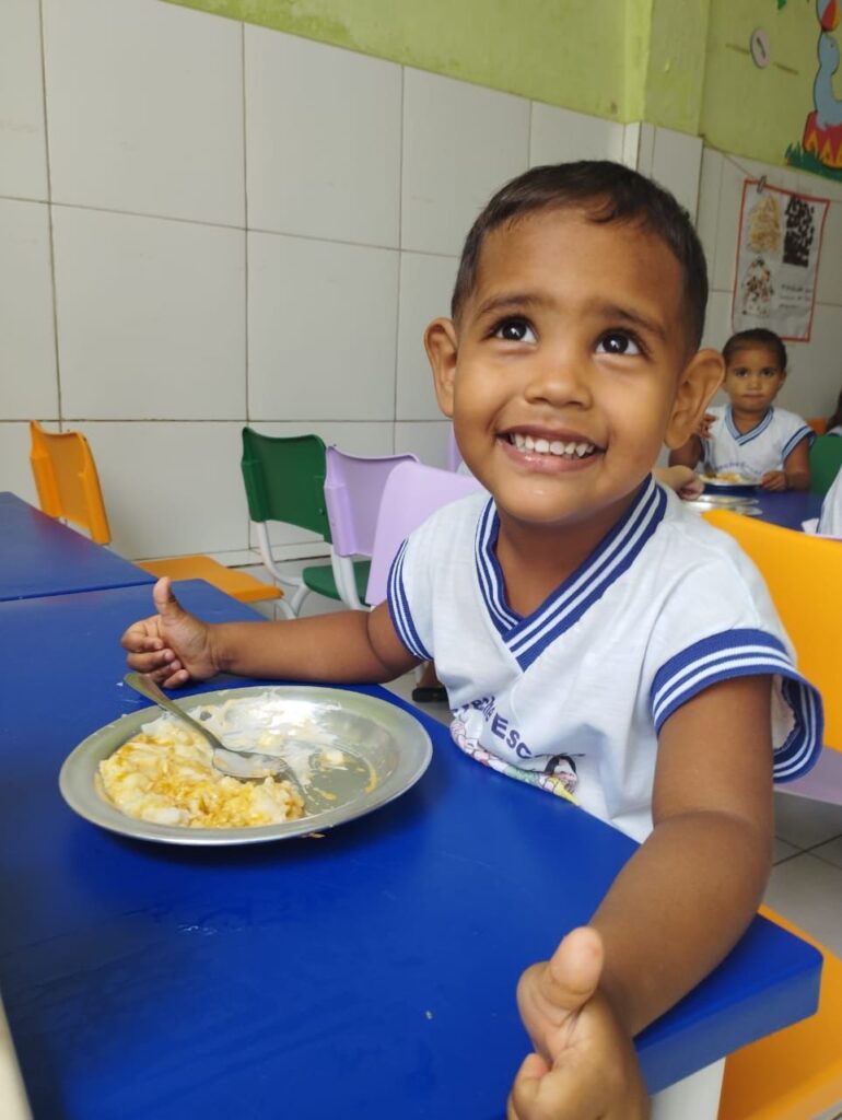 Além disso, diariamente, são ofertadas 05 refeições para todos os pequenos alunos das creches. E a preparação de cada alimento é acompanhada por uma equipe técnica composta por nutricionistas, que cuidam da merenda de todas as unidades municipais de Ensino, seguindo o manual de operacionalização do Programa de Alimentação Escolar, também instituído no município.