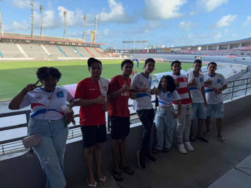 Cerca de 40 alunos participaram da ação e puderam acompanhar o jogo nas cadeiras da arquibancada alta, vibrando com a torcida e apoiando o time alagoano. Entre eles estava Alysson André dos Santos, responsável pela confecção da maquete do estádio, que compartilhou sua expectativa antes da partida. “É o meu primeiro jogo em um estádio, estou ansioso. Espero que seja emocionante e que o CRB vença”, disse o jovem.