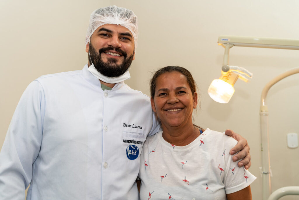 Após receber a prótese e se olhar no espelho ela sorriu e revelou que sem a prótese era muito ruim o dia a dia. Ela tinha dificuldade para comer, sorrir e até conversar com as pessoas, pois ficava com vergonha porque não tinha os dentes.