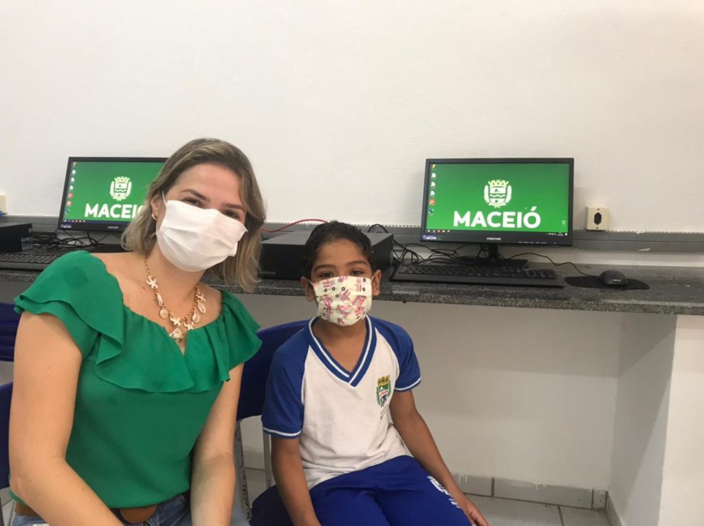 Os alunos da rede municipal de ensino de Maceió ganharam nesta sexta-feira (12) mais um reforço para interações digitais na sala de aula. A vereadora Gaby Ronalsa, participou de solenidade com o prefeito JHC, e o secretário de Educação, Elder Maia, que entregou os 10 primeiros computadores na escola municipal Santa Tereza de Jesus, no Prado. Ao todo serão entregues 300 computados na rede municipal de ensino.